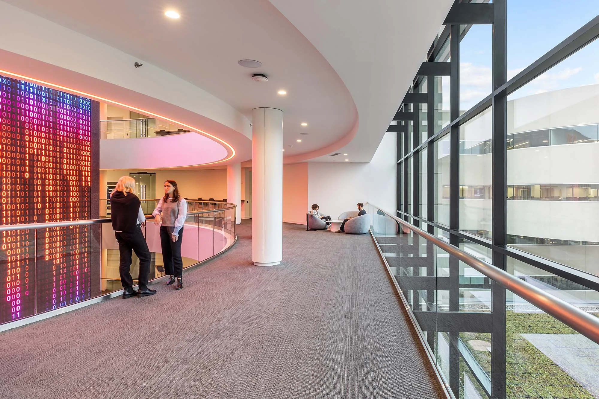 This project entailed the complete retrofit of a four-story suburban New Jersey class A office building for this Fortune 500 fintech client. We designed the floors accommodating 3,000 Fiserv associates by distributing a series of social work zones that each floor servs as a “home base” for specific business units.