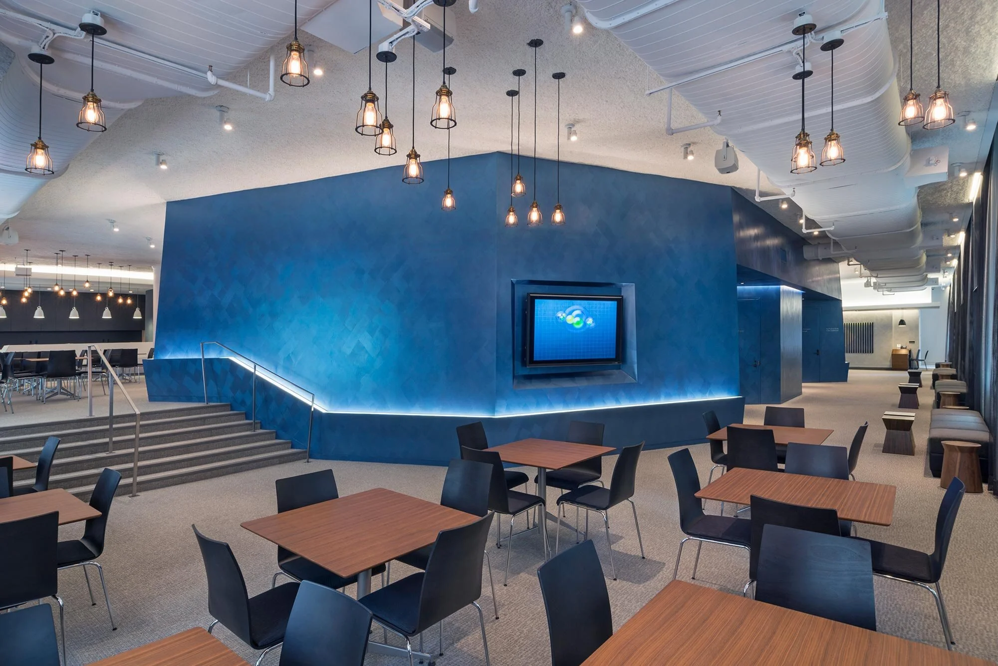 Outside of the auditorium, TMA designed numerous casual seating arrangements for impromptu discussions, perhaps during a lecture or guest speaking engagement.
